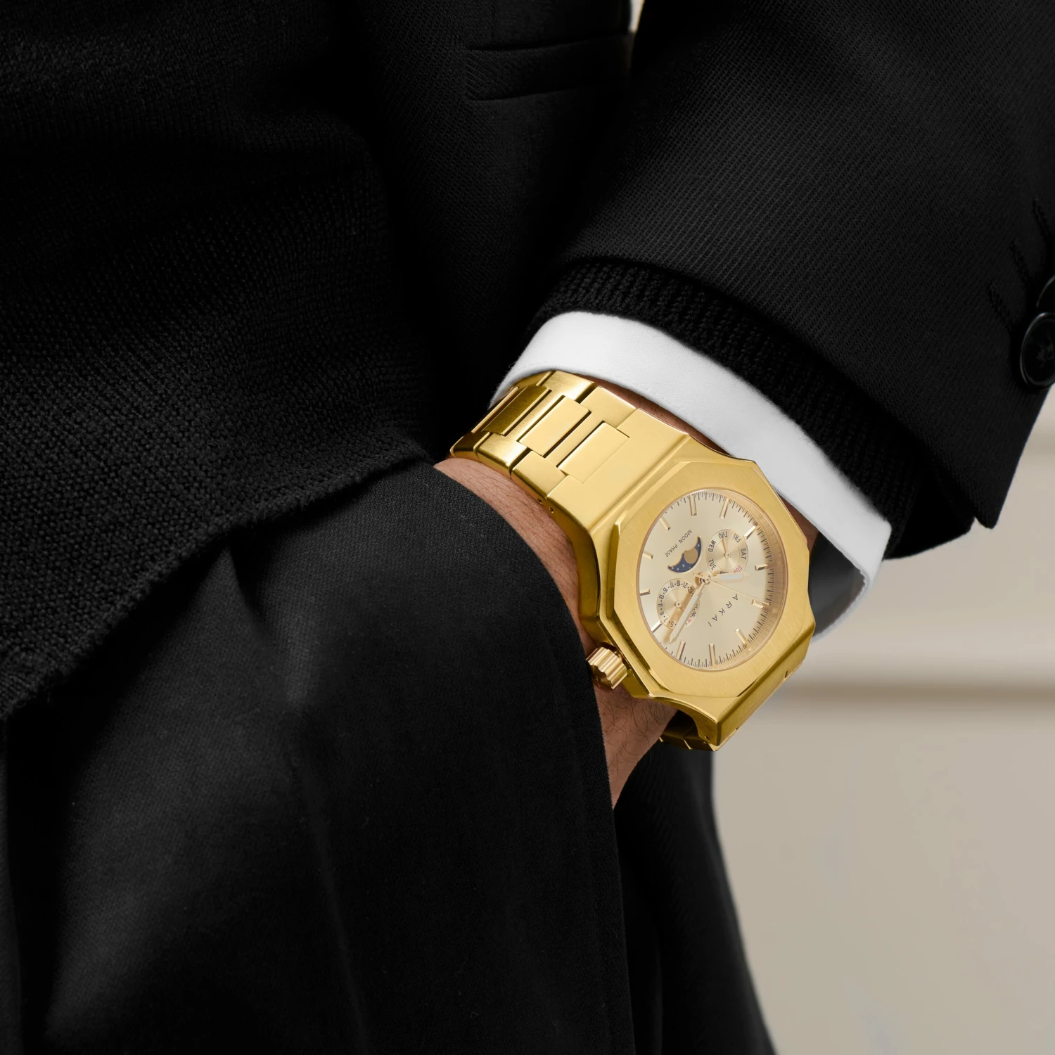 Positioning a moon phase aperture within a gold-tone dial with matching accents, the Ashten Moonphase Watch for men is stunning to look at – no matter what phase the moon is in.
