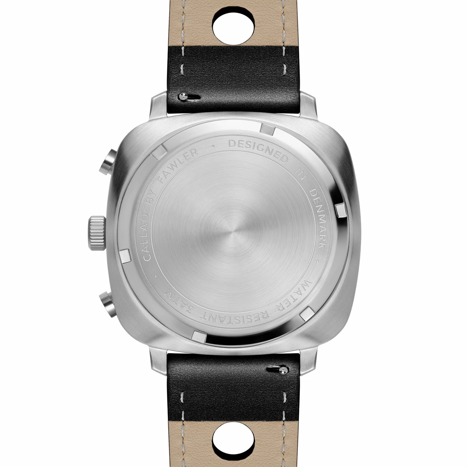 The brushed steel watch case made of surgical-grade stainless steel protects the reliable Miyota chronograph movement inside. The genuine leather racing straps can be replaced without any tools, thanks to their quick-release spring bars.