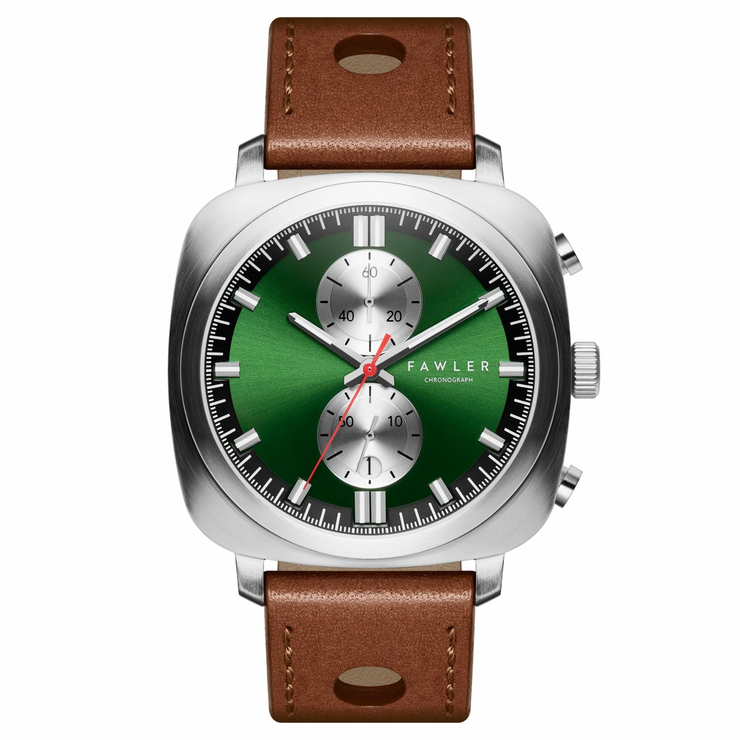 A cushion-shaped menβs watch that circles the square. The Callao features a reliable Japanese Miyota chronograph movement and a surgical-grade stainless steel case.