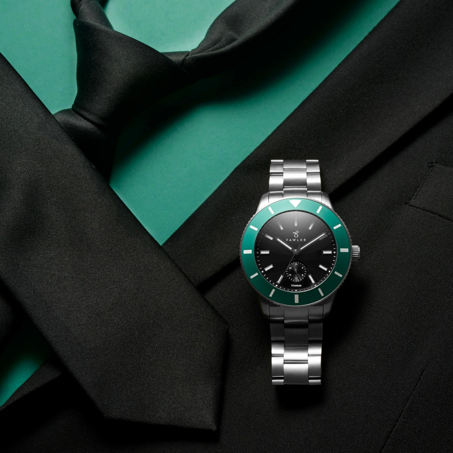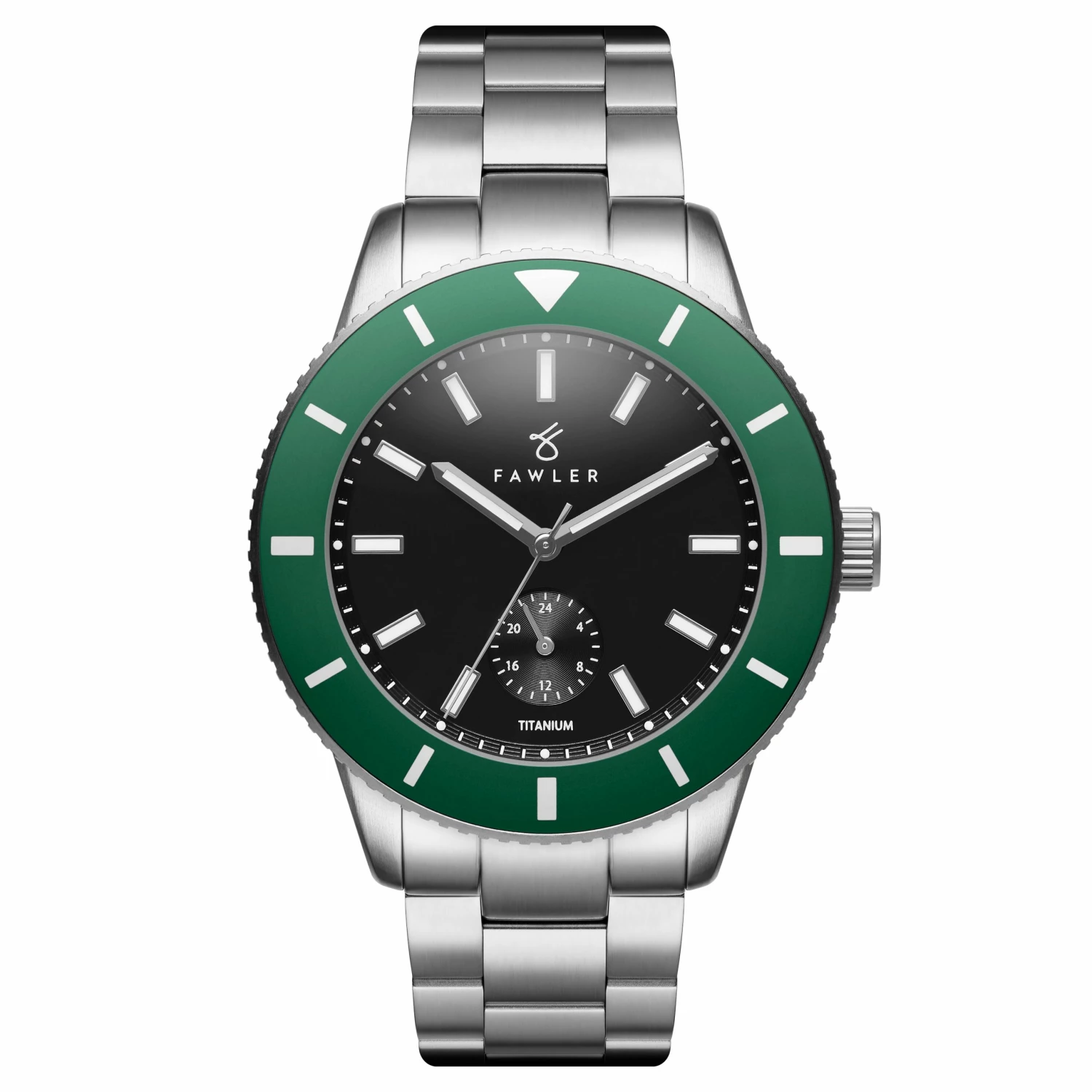 Secures to your wrist with a titanium strap with a robust fold-over deployant clasp. The crystal is double-domed hardened mineral glass with an anti-reflective coating. An aluminum dive bezel allows you to mark the time you went into the water to keep an eye on your oxygen reserves, or when you put the kettle on.