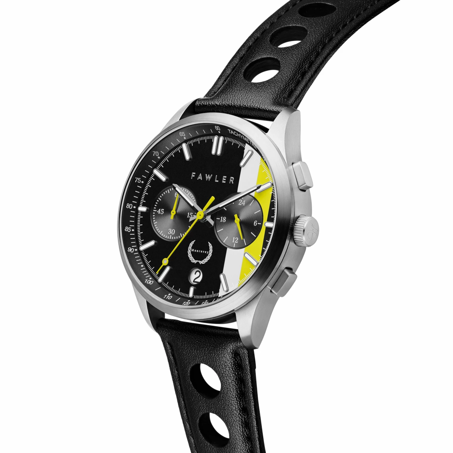 Start your engines. Strap a classic racing watch to your wrist. The Monterey can time you, measure your speed, and is designed with professional driving in mind. Its tactile buttons and crown are designed to be easy to operate with gloves on.