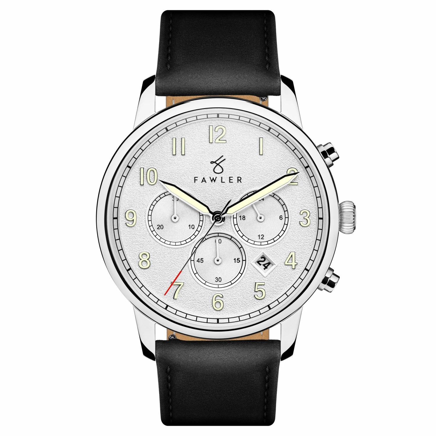 This menβs watch features a chronograph with separate second and minute dials that allow you to measure time accurately up to 30 minutes, and a third dial shows a 24-hour clock. Glow-in-the-dark hands enable you to tell the time in complete darkness, as long as you know which way your forearm is facing.
