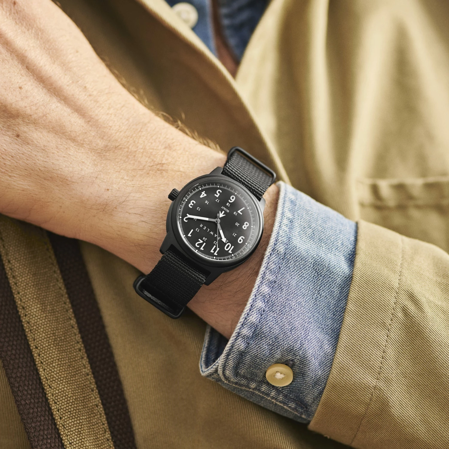 Its light and rugged Nato strap is not only soft and comfortable for long-term wear, but itβs also easy to replace and even easier to clean. Simply slide the watch off the strap and throw the strap in with the laundry.