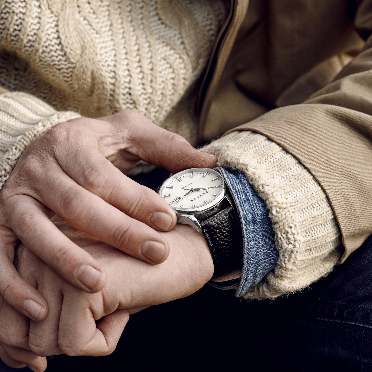 Glow-in-the-dark hands and indices ensure readability day and night. Complete with a discrete date window at 3 oβclock.
