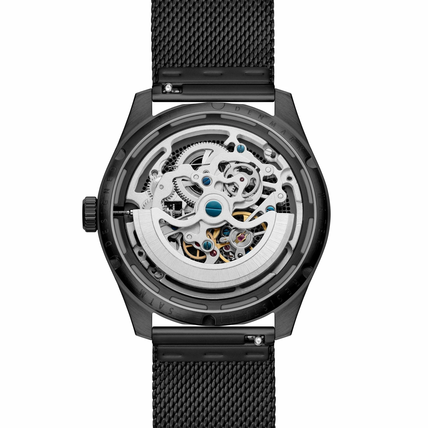 Covering the dial is scratch-resistant sapphire crystal β the hardest material used in watch crystal making. Both case and strap are made of surgical-grade stainless steel PVD-coated black. The color consists of titanium nitride fused with the metalβs surface at the molecular level, giving you a stunning black hue that will neither fade nor flake and is highly scratch and tarnish resistant.