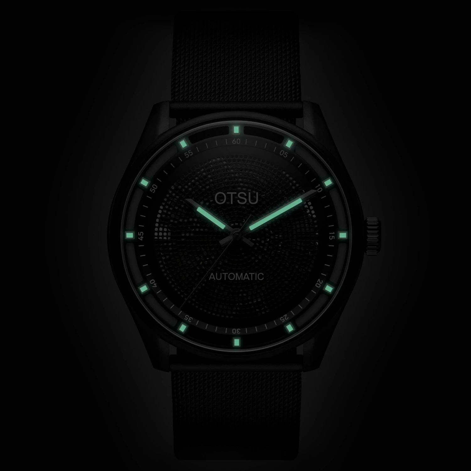 High-grade Japanese glow-in-the-dark lume on the hands and indices ensures you can tell the time in the darkest of nights⦠as long as you know which way your wrist is facing.