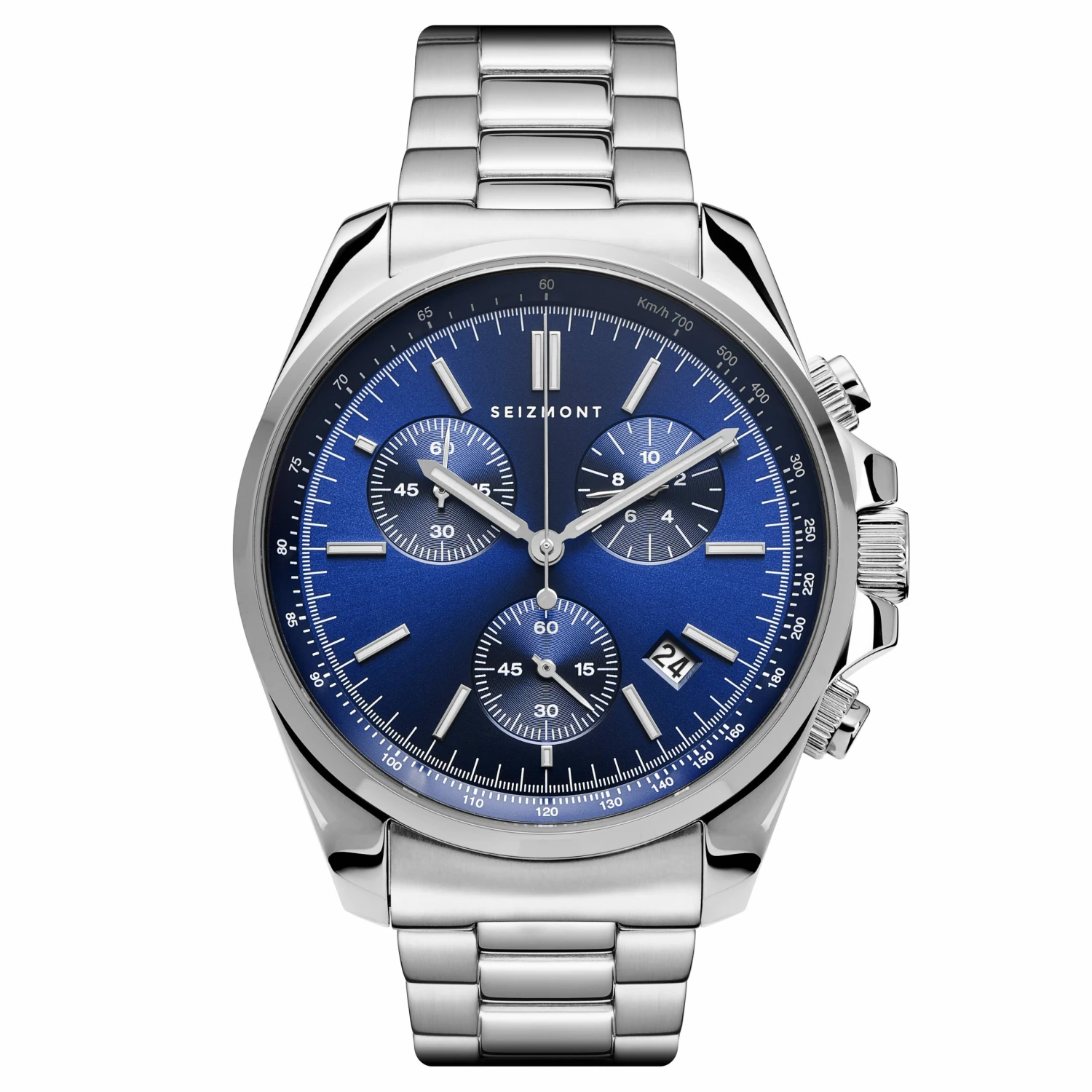This chronographβs silver and blue color scheme blends the best of minimalism with the right amount of classic style.