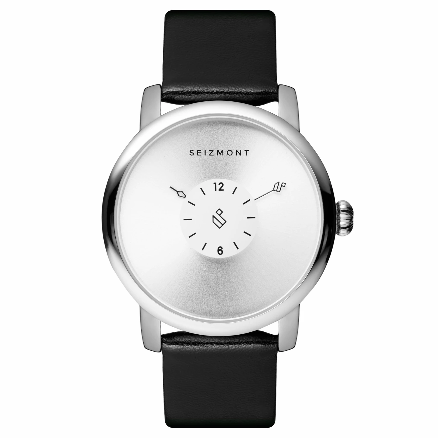 This Seizmont timepiece focuses the eye on the small center dial and the hands that carefully rotate around it. Telling time couldnโt be easier. The arrow points to the hour!