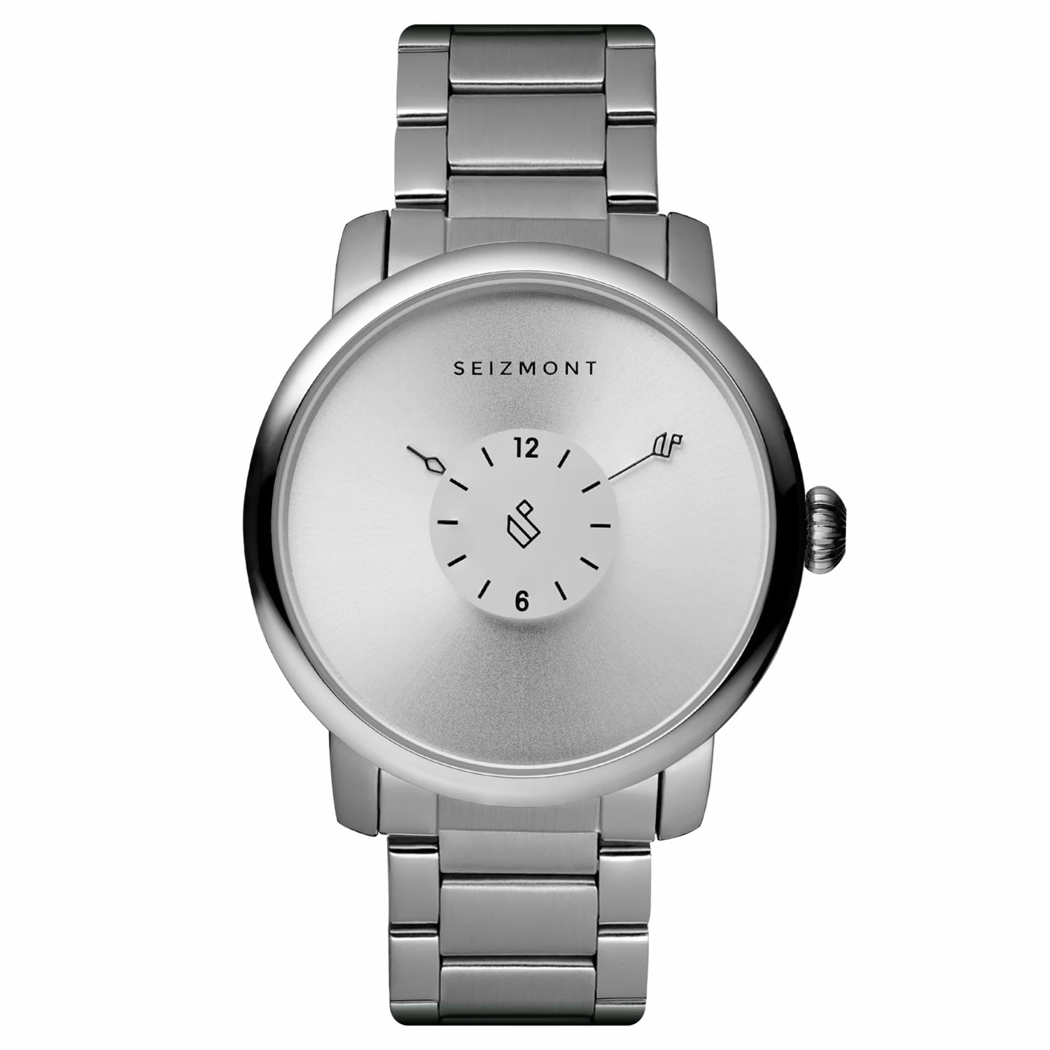 Who says simple has to be boring? This silver-tone watch for men appears minimalistic in its design but makes an impact with its unique way to tell the time.