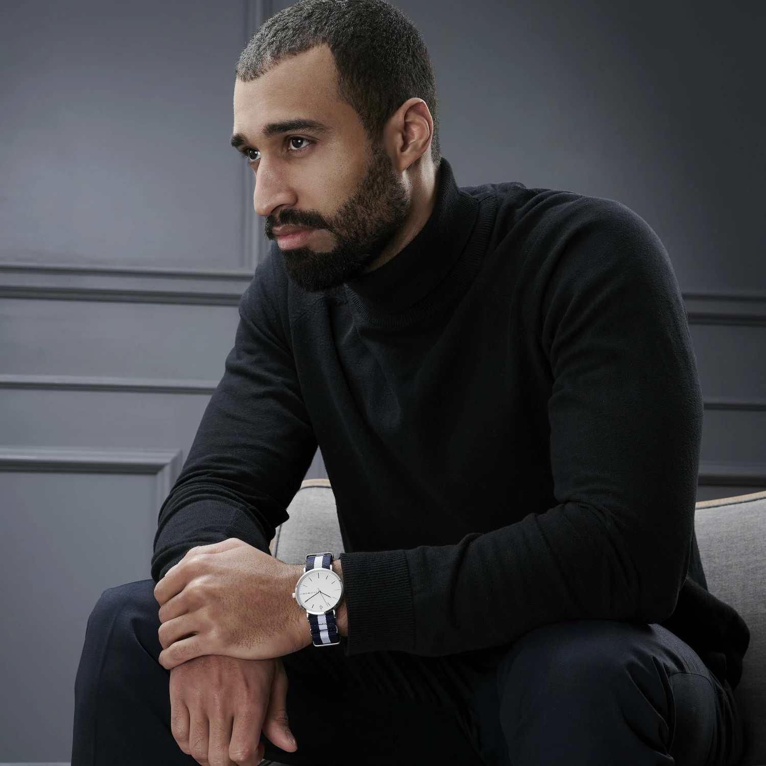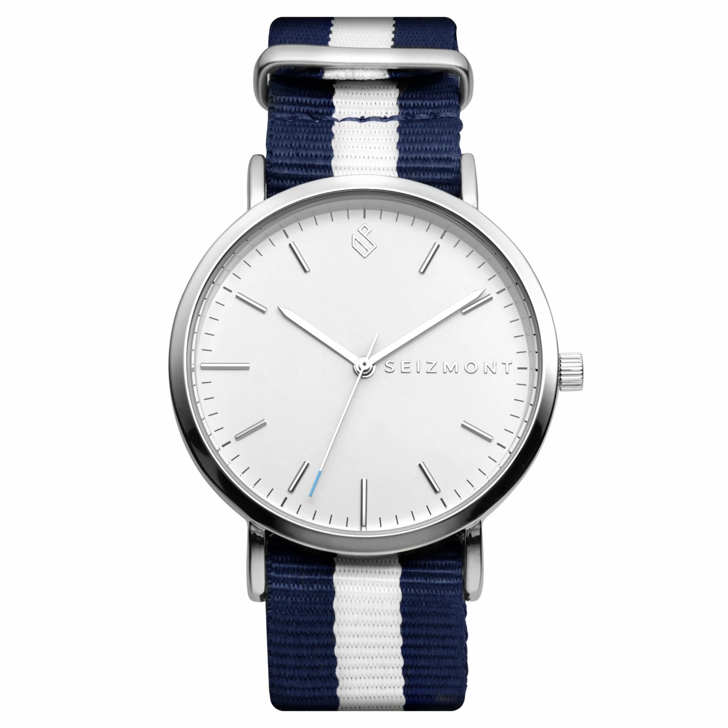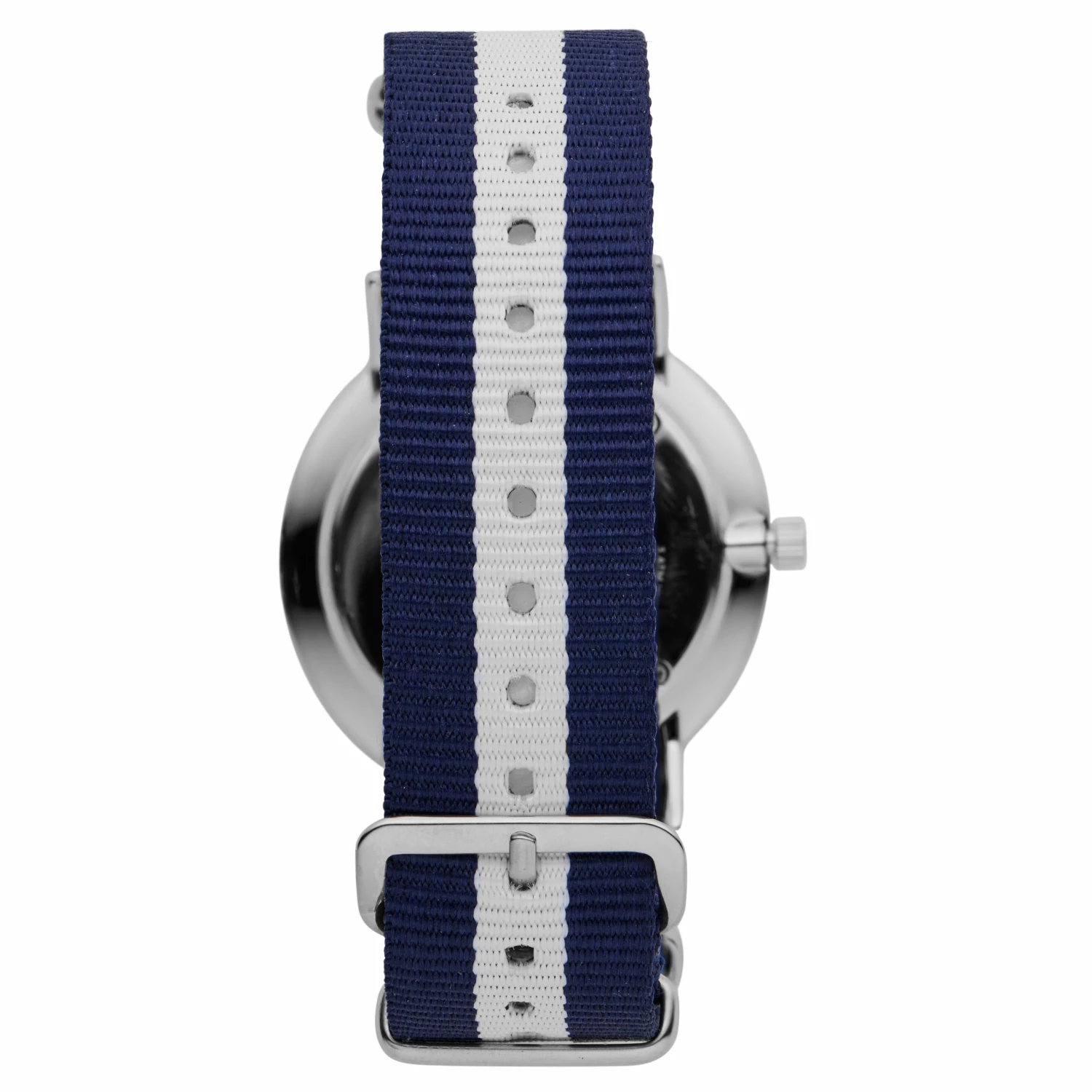 This slim, navy-themed watch for men fits around your wrist snugly. The case is 1/4” thick and sports hour, minute and second hands. Features battery-operated, Japanese quartz movement for precision timekeeping that won’t let you down, whatever you do and wherever you go.