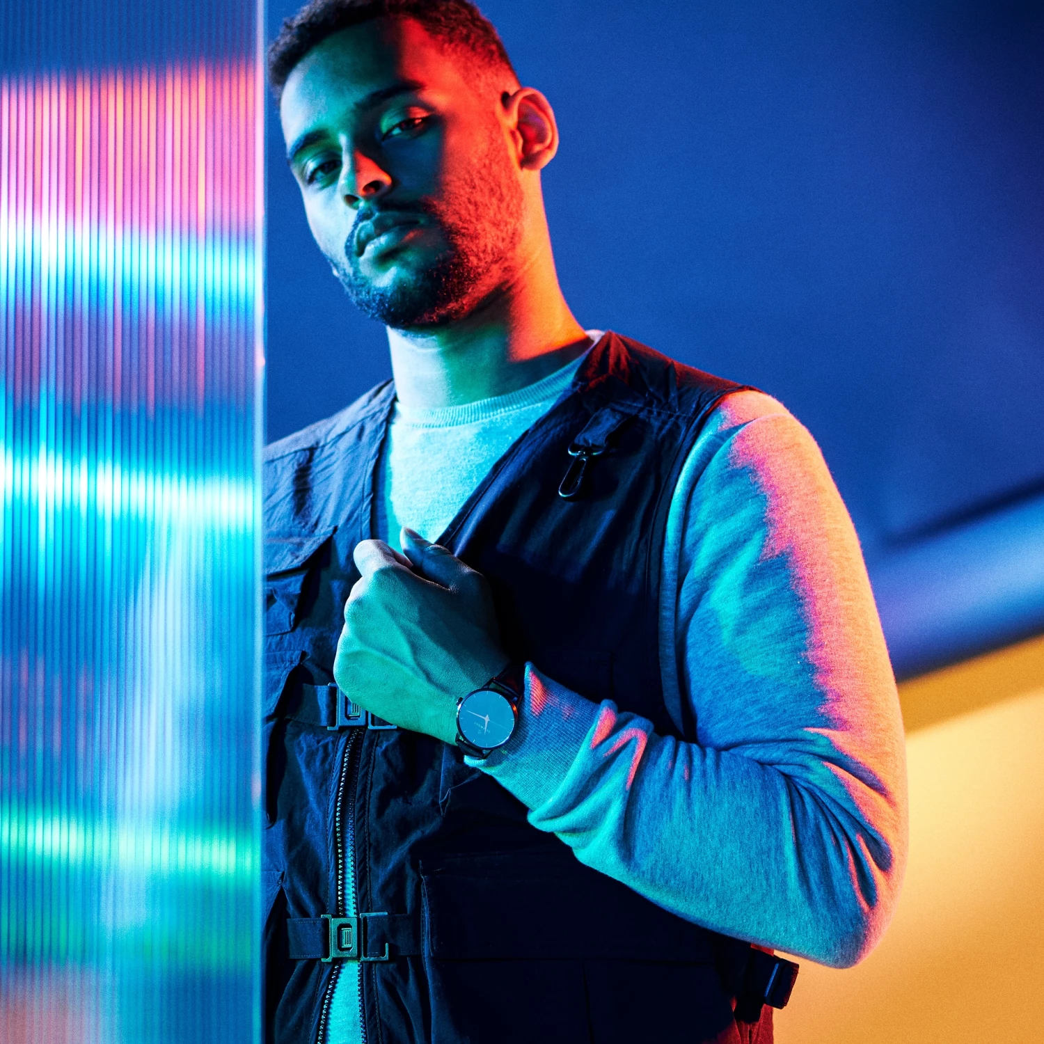 This men’s watch features a domed crystal imbued with a slight blue and green tint and subtle mirroring for an unmistakable flash of style.