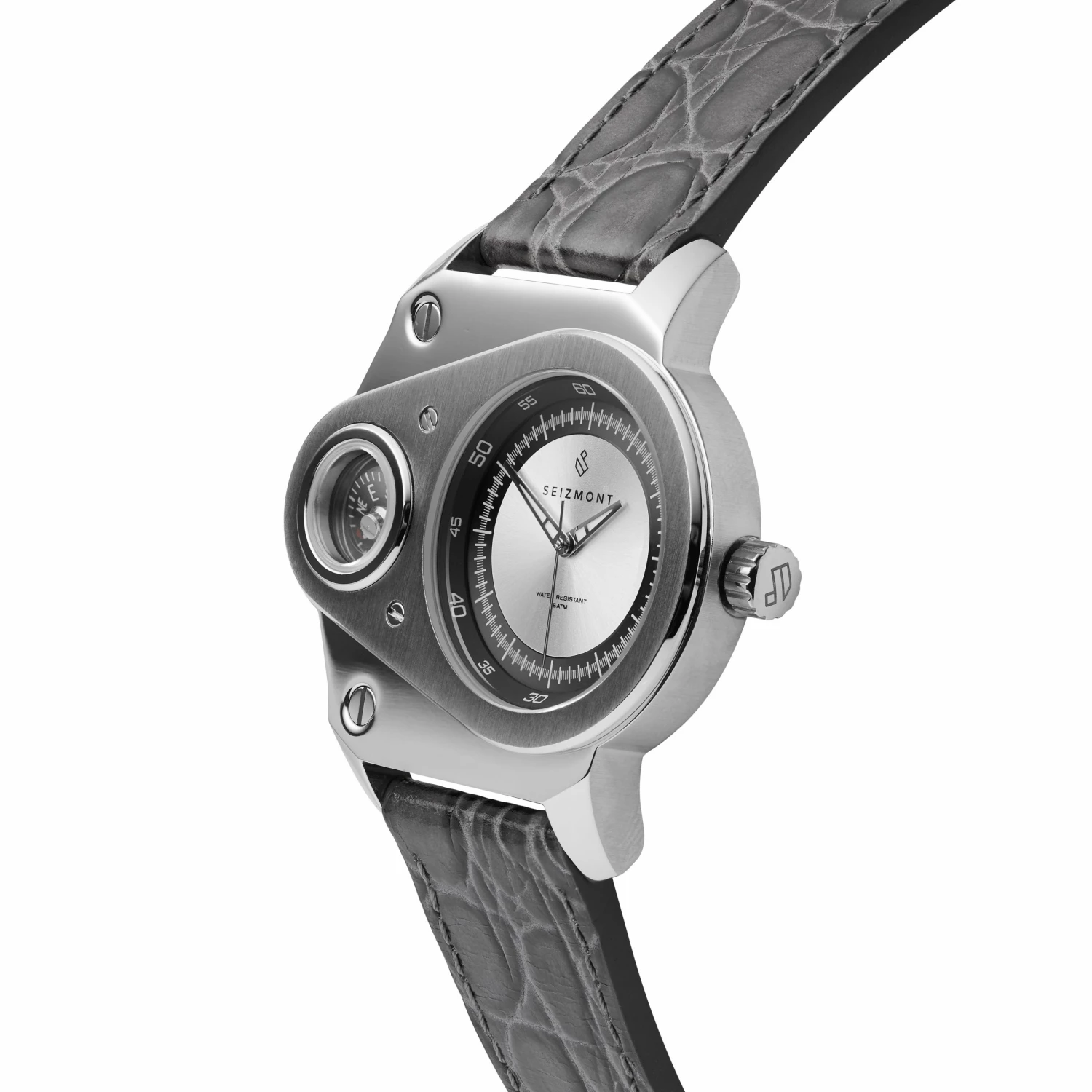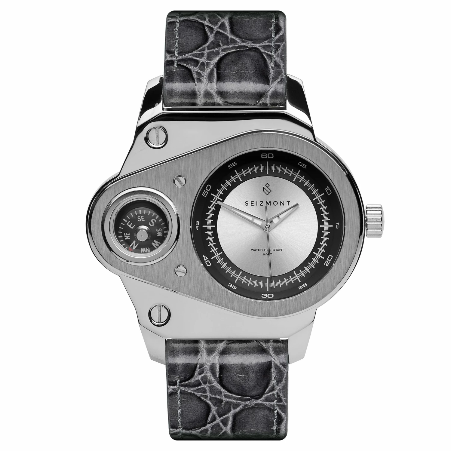 The best part is that you donβt have to take this watch off when the journey ends. With a sleek design that features brushed and polished silver-tone stainless steel and a dark-grey textured band, this watch will look just as good with your dressed-up outfit as it does on your next hike.