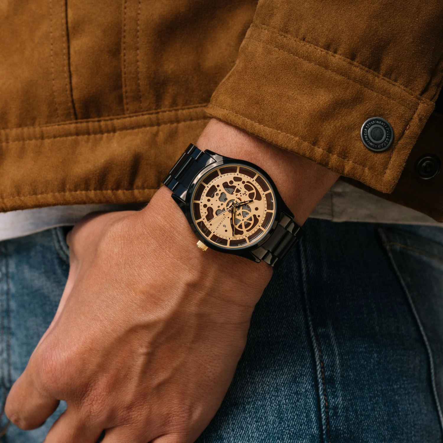 This selection from Seizmont handsomely combines these 2 colours for a masculine timepiece to rival any 007 wannabes.