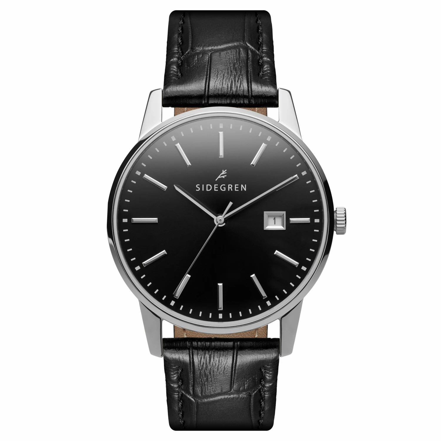 Hitting the target of style and function, this ultra-thin 40mm case is crafted from surgical-grade stainless steel. The highly legible black dial is protected by double domed sapphire crystal glass β the ultimate choice for timepieces and the only way to get a completely undistorted view of the time from any angle.