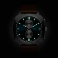 Best deal 🔔 Fawler Cicero | Silver-Tone With Blue Dial Vintage Chronograph Brown Leather ⌚ Watch ⭐