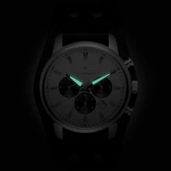 Wholesale 🥰 Seizmont Iphios | Black and White Leather Cuff Stainless Steel Chronograph ⌚ Watch 🎁