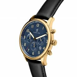 Cheap 𧨠Fawler Pluto | Gold-Tone Chronograph β Watch With Blue Dial & Black Leather Strap π