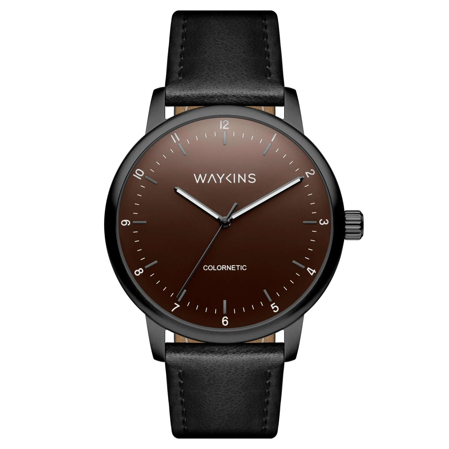 Sleek, simple, and elegant, this all-black watch has a subtle secret⦠as it heats up from the touch of your skin, the dial changes color.