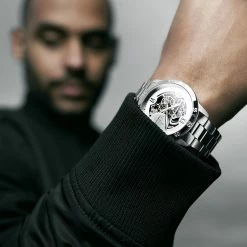 Made of surgical-grade stainless steel and powered by reliable Japanese Seiko movement. Features genuine leather straps that are easily interchangeable without the use of tools. All you need are functioning fingers.