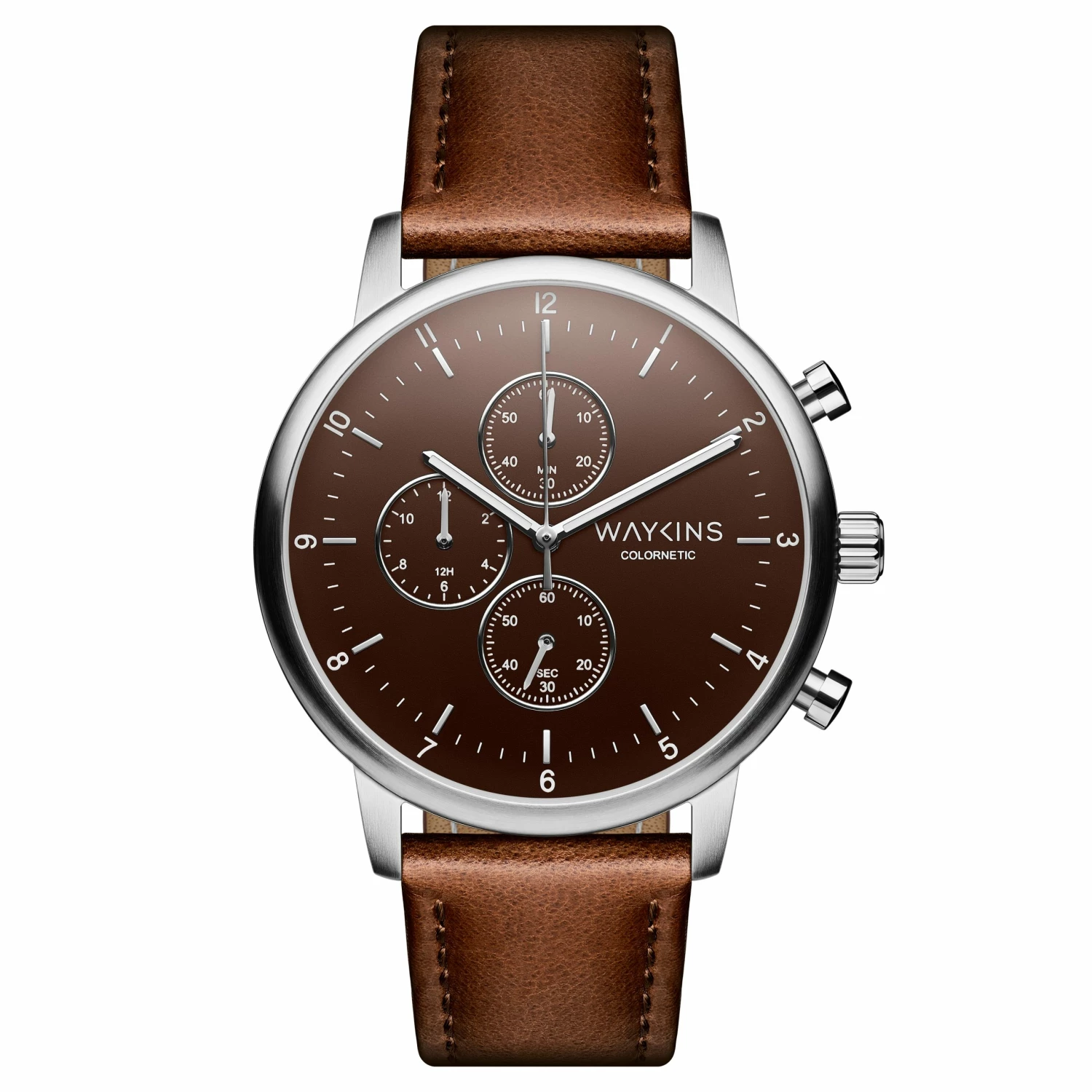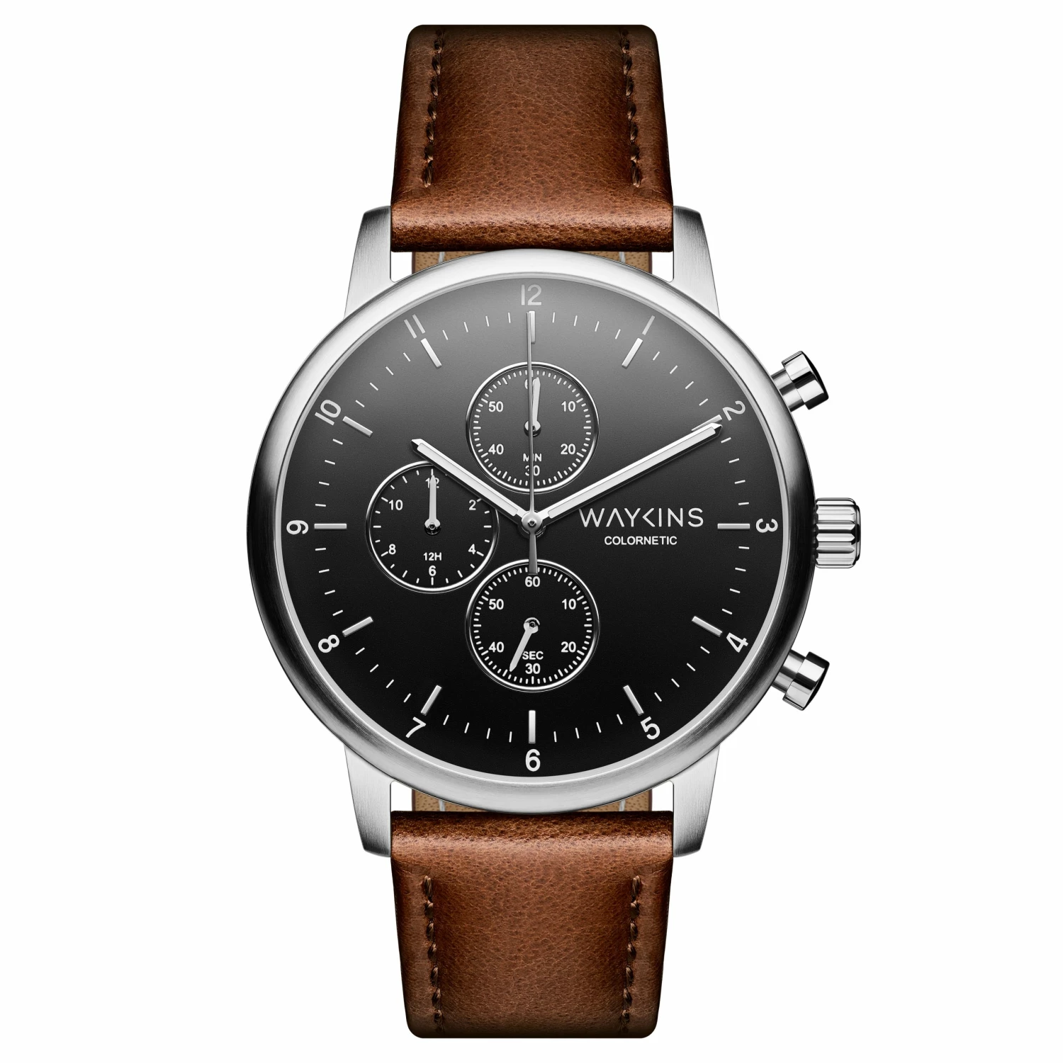 Simple, sleek, and elegant, this limited edition chronograph watch carries a subtle secretβ¦ the dial changes color as itβs heated up by the touch of your skin.