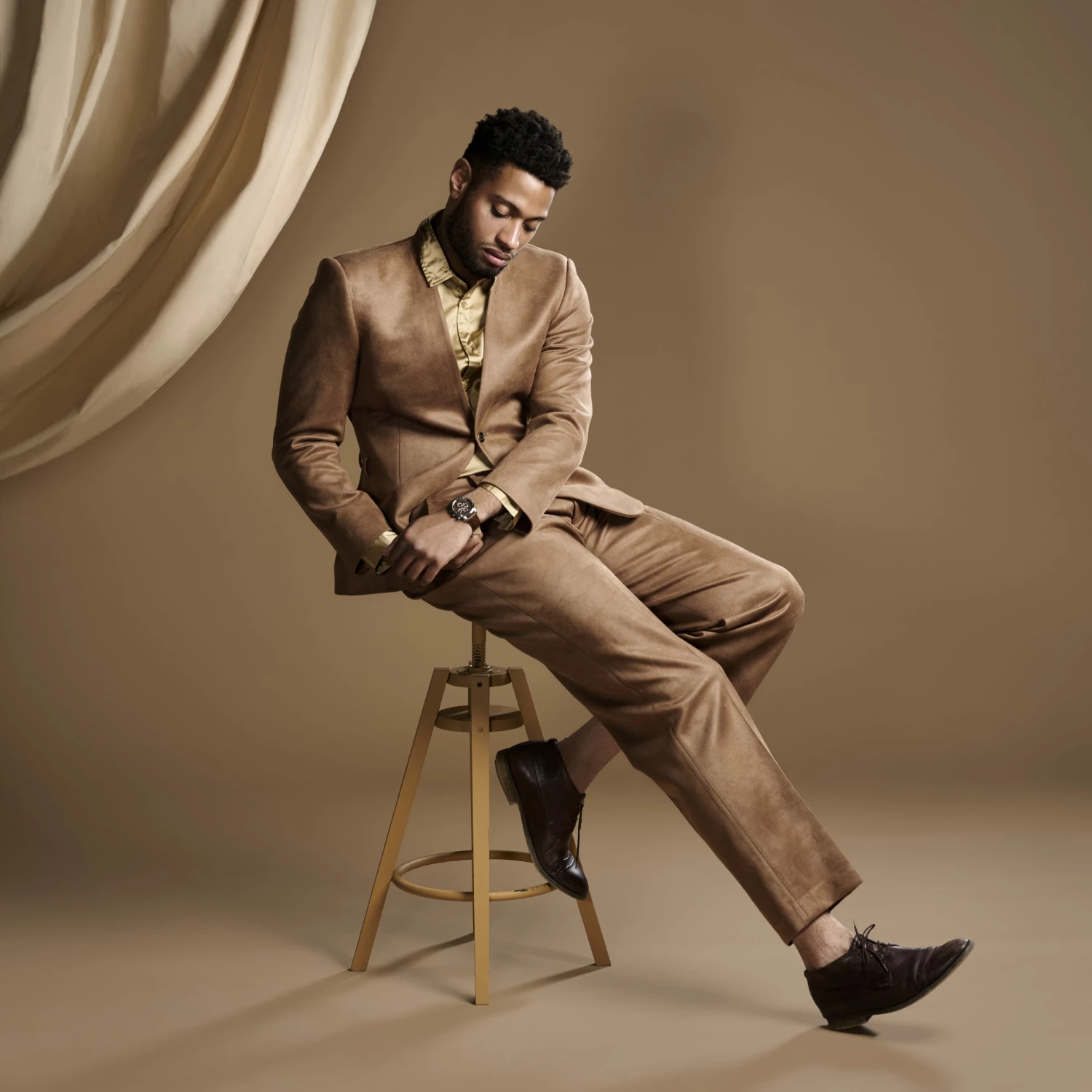 Secured to your arm with brown interchangeable genuine leather straps. Swap them out in no time with only your fingers.